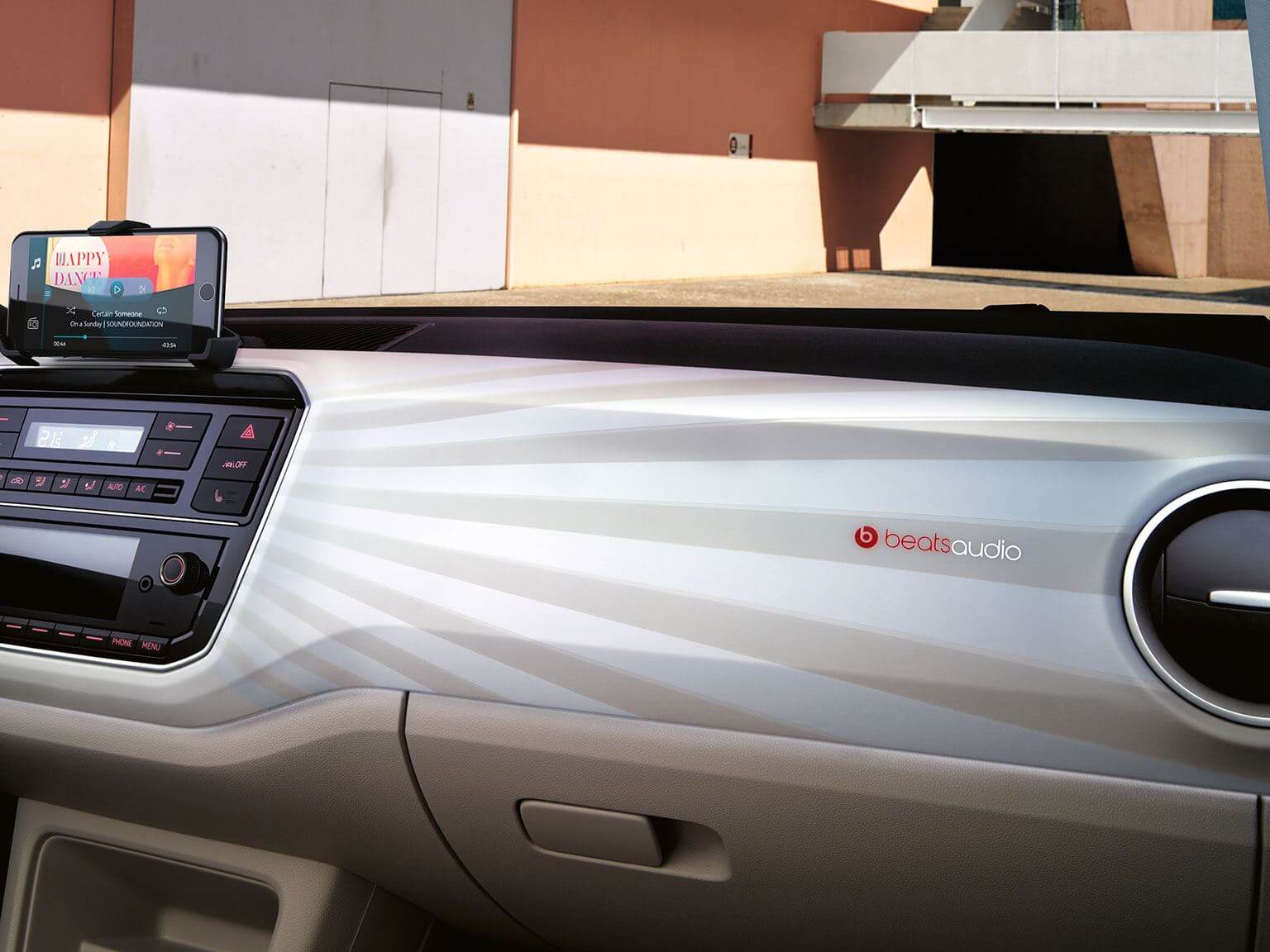 Il sound system Beats di serie sulla versione Beats è stato progettato in collaborazione con gli esperti di BeatsAudio™ appositamente per la Nuova Up!. Con un potente amplificatore a 8 canali da 300 watt e sei altoparlanti high-end, tra cui un subwoofer nel vano della ruota di scorta, l’esperienza musicale a bordo sarà unica e coinvolgente.