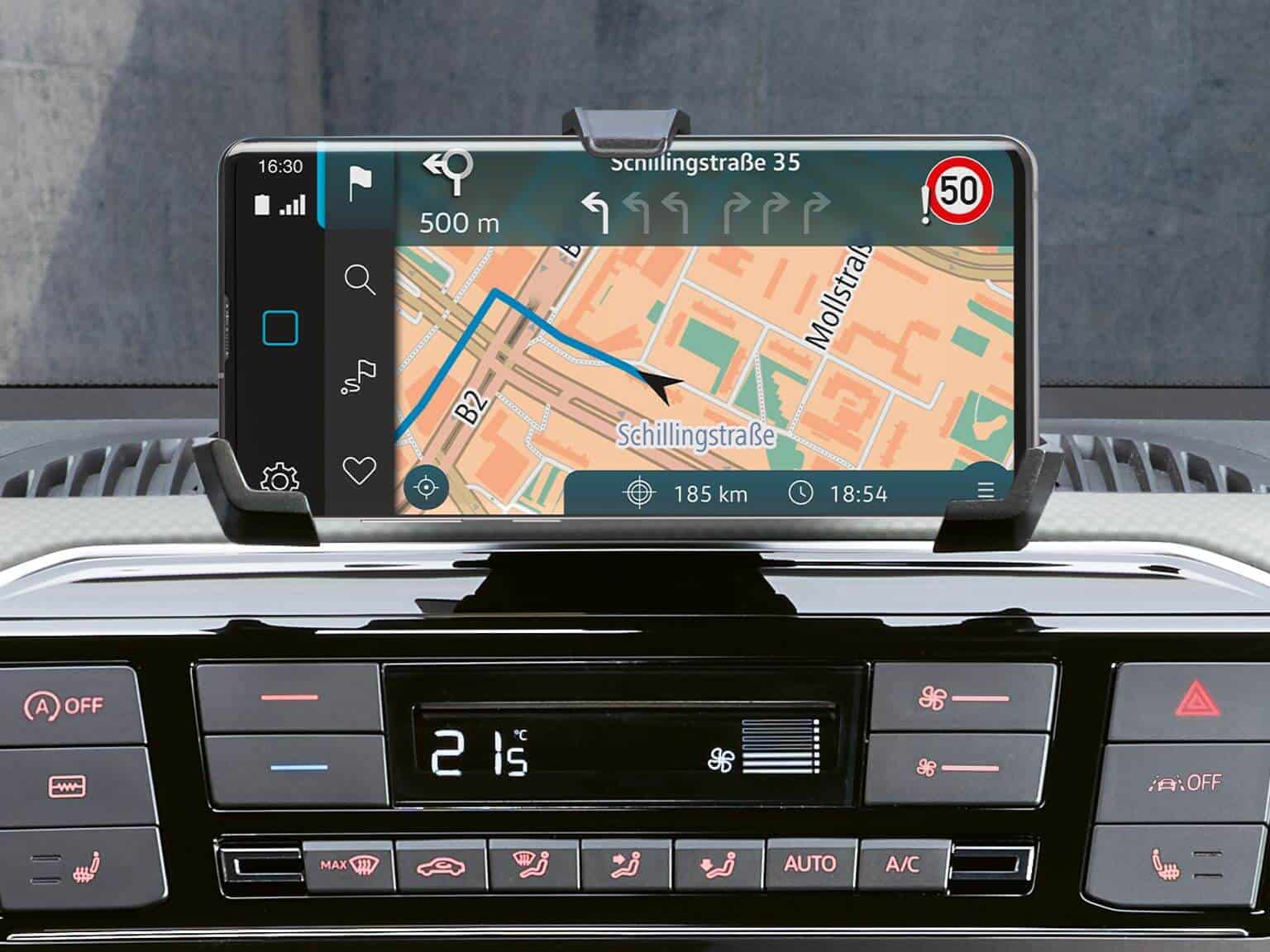 L’App maps+more ti avvisa se superi i limiti di velocità, mantenendoti sempre informato durante il tragitto. Grazie alla nuova funzione Traffic sign recognition, l’App riconosce la segnaletica stradale e ti indica i limiti di velocità, assicurandoti di guidare sempre in sicurezza.