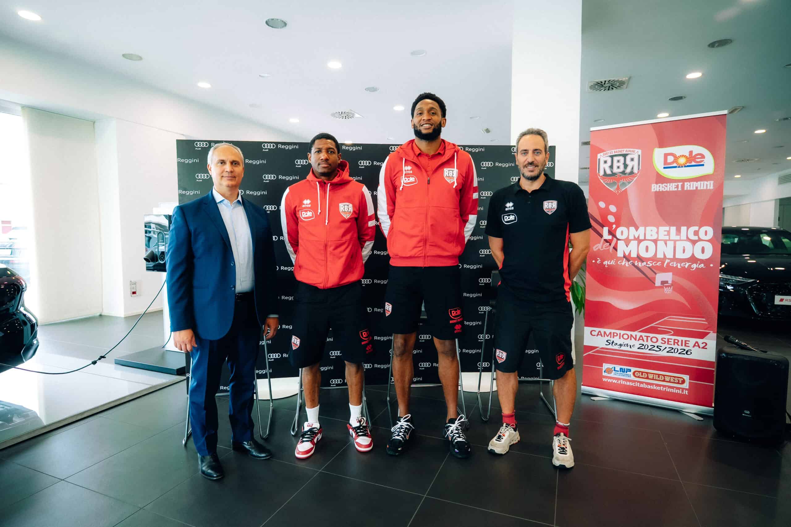 Mercoledì 10 settembre, San Marino – In una tipica giornata autunnale di freddo e pioggia a portare il sole ci pensa la coppia americana della Dole Rimini 2025-2026 formata dal neo arrivato Mark Ogden e il confermato Gerald Robinson, presentati ufficialmente nella mattinata di mercoledì (10 settembre) alla concessionaria Reggini.